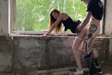 Проучил студентку, заставив отсосать и встать раком на заброшке