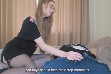 Молоденькая мачеха всё же поддалась на уговоры и поцеловала член
